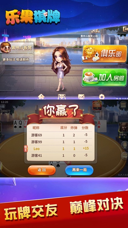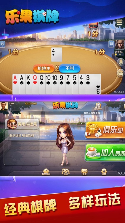 乐果娱乐棋牌是一款集合了多种传统与现代棋牌游戏的应用,旨在为玩家提供一个休闲娱乐、竞技比拼的在线平台。游戏融合了丰富的棋牌游戏种类,包括斗地主、麻将、德州扑克、象棋等多种玩法,满足不同玩家的游戏需求。