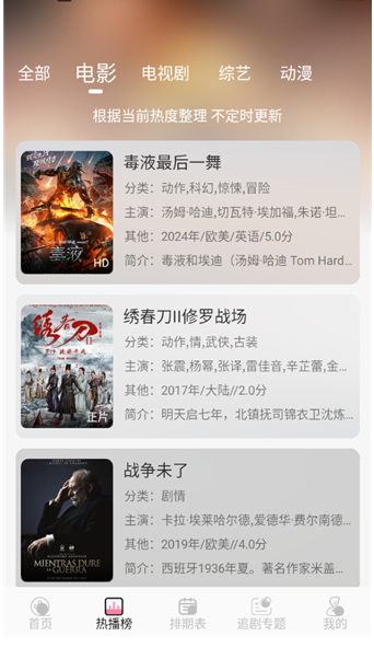 1. 热门推荐:每日更新热门影视榜单,让用户不错过任何一部好剧。