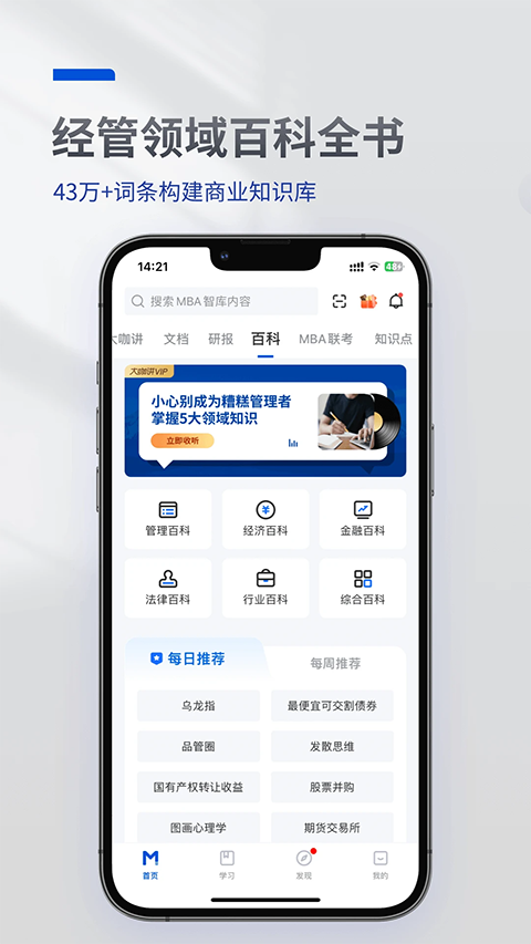 MBA智库免费版是一款专为商业管理专业人士及对商业知识感兴趣的普通用户设计的在线学习平台。该平台汇集了大量关于商业、管理、经济、金融等领域的专业文章、视频教程、研究报告和案例分析,旨在帮助用户提升商业素养、拓展知识视野、增强决策能力。