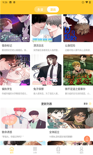 3. 更新提醒:支持用户订阅感兴趣的漫画,更新时及时提醒。