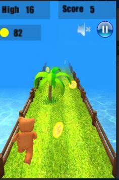 2. 奔跑:控制小熊在赛道上奔跑,注意躲避前方的障碍物。